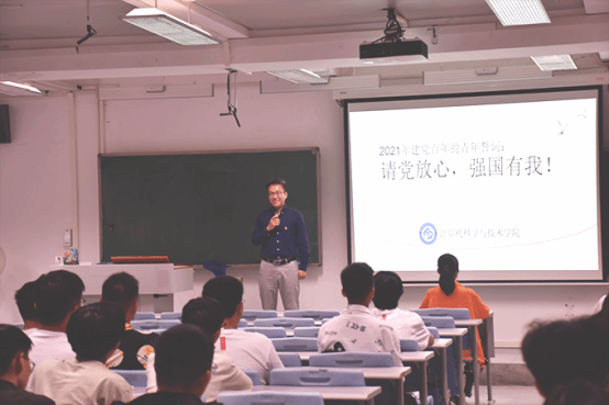 最后,刘群锋教授让同学们一起喊出2021年建党百年的青年誓词:“请党放心,强国有我!”通过这句话,强化员工们自己的责任意识,同时也鼓励了员工们要不断进步,在日后要成为中华强国的中坚力量。