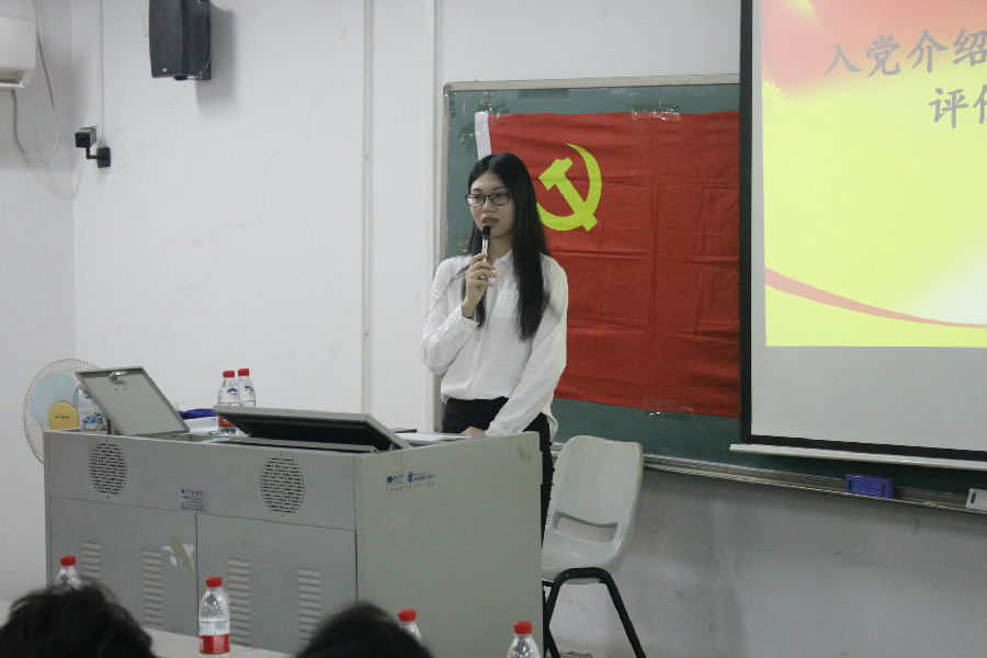 会议伊始,周如川老师报告党员出席情况和大会的流程。接着,预备党员依次上台讲述自己一年预备期以来的思想、学习、工作以及参与实践活动等方面的情况,紧接着由正式党员组成的答辩小组就预备党员的汇报情况进行提问,预备党员就问题进行相应的答辩。