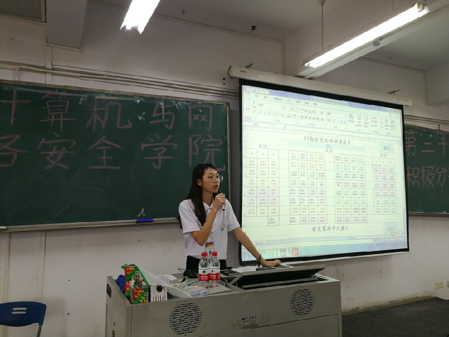 会议伊始,首先主持人陈诗怡同学简单地向第二十七期入党申请人讲解入党流程及其注意事项。紧接着党建办主任蔡元俊为大家分享了他的入党历程,警示入党申请人要明确自己的入党动机与入党理念。