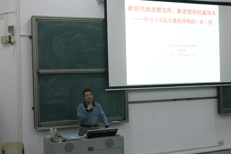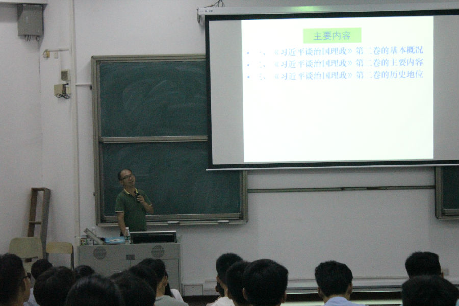 本次会议围绕着《习近平谈治国理政》第二卷的基本概况、主要内容、历史地位三个方面开展。唐元松教授对《习近平谈治国理政》内容进行了详细的讲授,对习近平新时代中国特色社会主义思想的多方面影响进行了全面的阐述。唐教授的授课内容令在场的党员同志们深受教育,启发了党员们对如何结合习近平新时代中国特色社会主义思想,更好的开展教学和学习活动有了更为深入的思考。