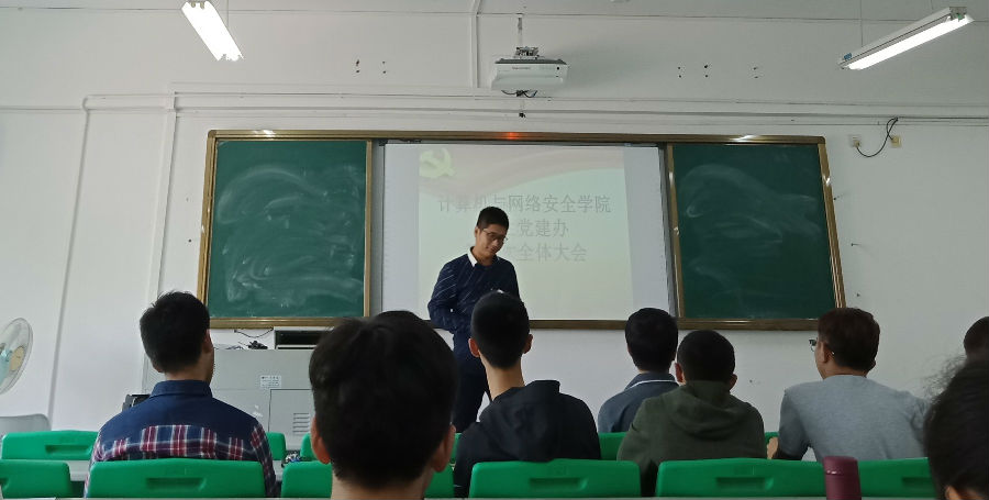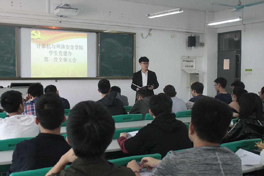 2018年3月15日,韦德官方网站计算机与网络安全公司党建办公室于计算机楼7b311召开了第一次全体大会,此次会议主要是对上一学期的总结汇报以及对新学期的进一步计划。主讲人为计算机与网络安全公司党总支员工支部书记周如川老师和党建办主任陈栋升,出席人员为党建办全体成员。