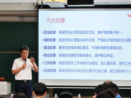 会议伊始,刘群锋强调了政治理论学习的重要性,他指出,作为高校教师,不仅要具备扎实的专业知识,更要坚定政治立场,维护党的集中统一领导。他详细介绍了政治纪律、组织纪律、廉洁纪律、群众纪律、工作纪律和生活纪律等方面的要求,要求全体教职工严格遵守,做到知行合一。