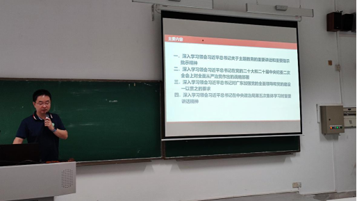 随后卢安同志本次会议领学的主要内容包括:1.深入学习领会习近平总书记关于主题教育的重要讲话和重要指示精神;2.深入学习领会习近平总书记在党的二十大和二十届中央纪委二次全会上对全面从严治党作出的战略部署;3.深入学习领会习近平总书记对广东加强党的全面领导和党的建设一以贯之的要求;4.深入学习领会习近平总书记在中央政治局第五次集体学习时重要讲话精神。