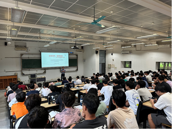 接着,刘群锋介绍了教育改革、科技体制改革和人才发展体制机制改革的具体措施,通过生动的案例分析了中国式现代化的内涵与要求,以及高质量发展对全面创新的迫切需求。他特别指出,新质生产力的崛起是推动社会进步的关键,而创新则是其核心动力。在谈到当前国际科技竞争态势时,刘群锋列举了中美两国在高科技领域的成就与挑战,特别是“卡脖子”技术的现状,激发了同学们对自主创新和科技强国的强烈共鸣。同时,他也展示了我国在5G芯片、通信技术、人工智能等领域的突破,增强了同学们的民族自豪感和自信心。