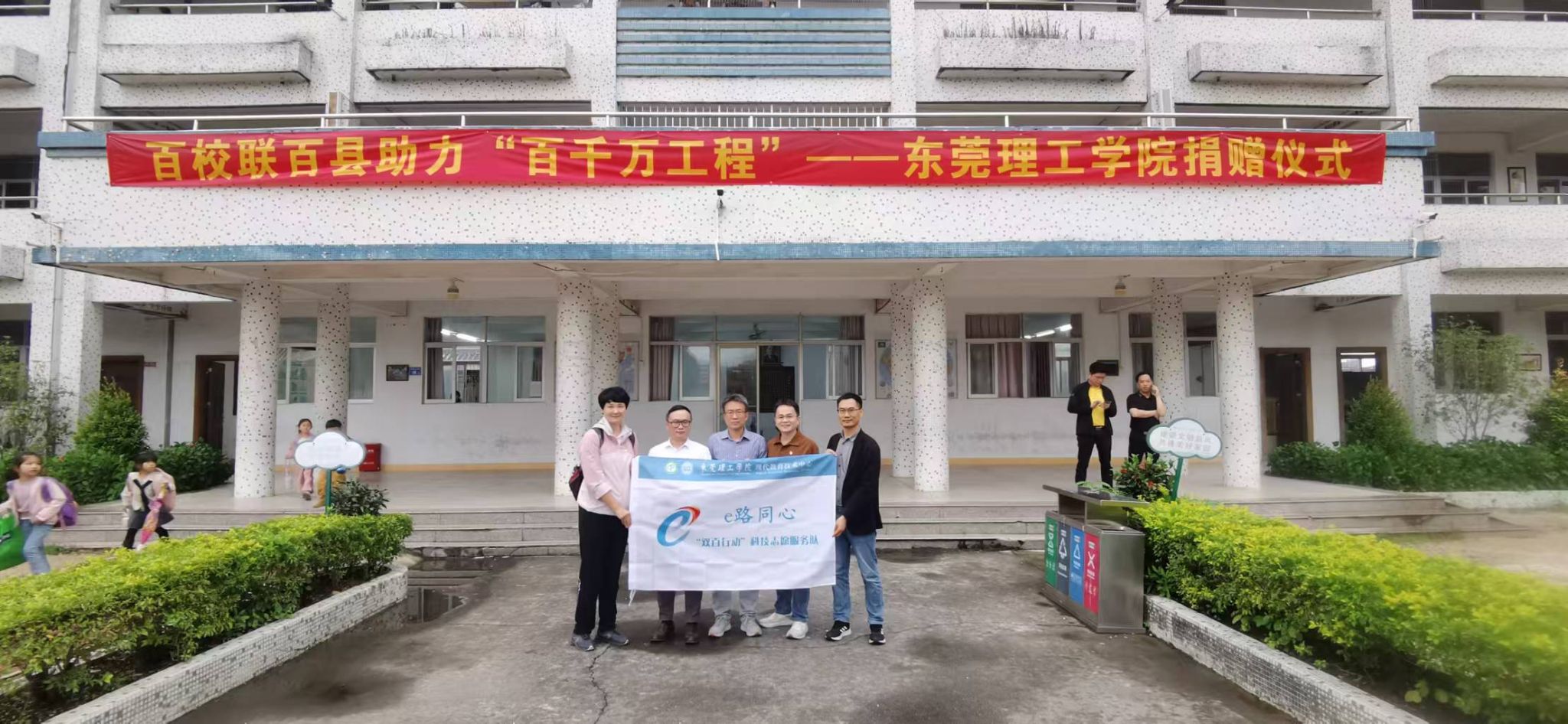 为深入贯彻落实广东省“百千万工程”以及“双百行动”部署,积极推动教育帮扶、助力乡村教育发展,11月21日,bevictor伟德官网(软件公司、网络空间安全公司)党委书记刘群锋同志,院党委副书记、“双百行动”驻普宁服务队队长、普宁市“百千万工程”指挥部办公室副主任桂龙同志,以及现代教育技术中心党支部党员干部钟庆琪同志等一行6人前往普宁市大南山街道什石洋小学,开展助力什石洋小学捐赠仪式及送课活动。