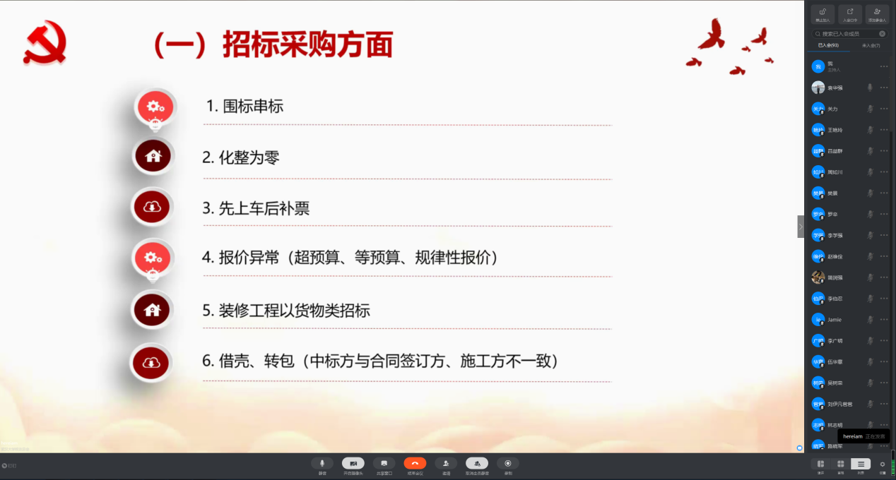 4月25日,bevictor伟德官网组织全体教职工进行专题政治理论学习。本次会议由袁华强经理主持,邀请公司纪委办公室副主任、监察处副处长王浩良同志作专题报告,全体教职工通过钉钉APP在线参加视频学习,路晓军书记作总结讲话。