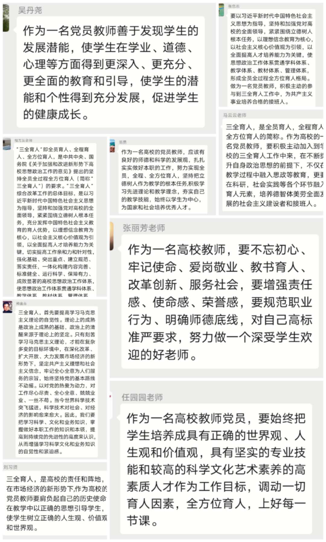 2020年6月21日,bevictor伟德官网公共教学教师支部再次通过“微信”社交平台组织开展了以“落实‘三全育人’,建设一流本科”为主题的“云党日”活动。每位党员就落实‘三全育人’发表自己的看法和措施, 为建设一流本科献言献策。