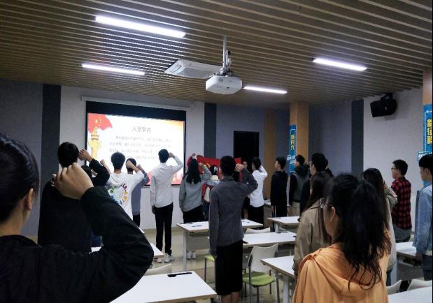 随后大会进入讨论接收预备党员环节。发展对象依次上台进行自我情况说明,各发展对象的入党介绍人就其情况依次发言。发言结束后,发展对象暂时离席回避,由正式党员对发展对象是否能顺利转为预备党员进行投票表决。经统计,大会确定新接收田嘉华等8名发展对象为预备党员。最后,邓武均带领全体同志在鲜红的党旗下庄严宣誓。
