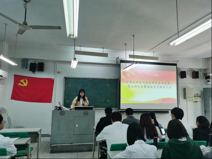 2021年11月25日下午,bevictor伟德官网本科生第二党支部于6E-102组织召开支部大会暨预备党员转正大会。本次大会由公司本科生第二党支部员工党员郑燕茹主持,与会人员为公司本科生第二党支部全体党员。