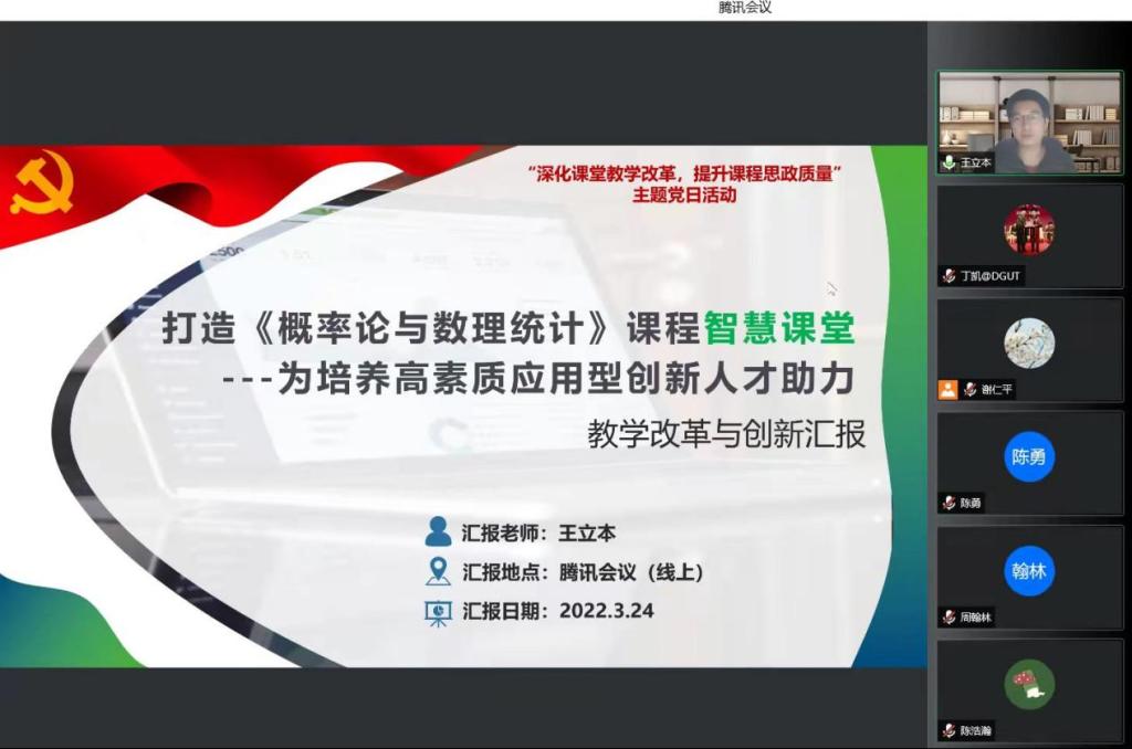 支部副书记王立本同志和支部组织委员谢仁平同志就各自在课程思政改革方面的经验做了分享。两位老师提出要结合课程特点、以员工为本,同时融入时政要闻,运用互动式、多媒体、混合式、试验式、问题式等多种教学方法,将课程思政贯穿于课堂授课、实验实训、作业考核等环节,逐步形成课程思政教学规范,做到知识传授、能力培养与价值引领有机融合,增强课程全方位育人的实效性。此次主题党日活动紧密结合教学实际,对老师们后续的思政公司产品改革工作起到了积极地推动作用。