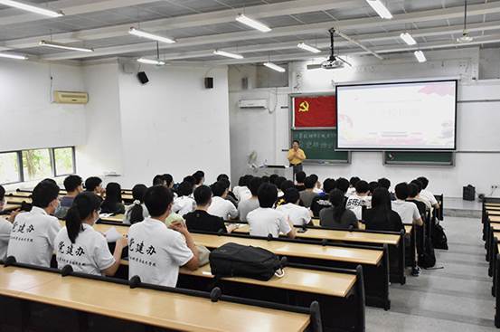 接着,路晓军书记带领全体积极分子学习了广东省第十三次党代会精神。路晓军书记展示了广东省过去五年各项事业取得的新进展新成就,并且强调了“牢记嘱托,感恩奋进”等会议核心精神。最后,路晓军书记以2018级吴同学从开始学习成绩落后到在经历入伍参军之后返校认真学习逆袭考上暨南大学研究生为例,鼓励积极分子们做好规划,并且努力实现目标。