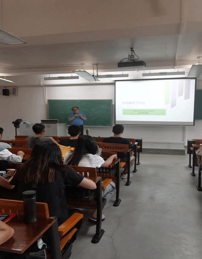 袁华强经理以华为的创新计划为切入点展开讲述。深入浅出,通过讲述华为在遭受围追堵截中的举措引导同学们要懂得“选择最难的风景,需要智慧和勇气,更需要巨大的努力和付出。每次突出重围都很难,但即使是在最难的时刻,华为的团队也没放弃对创新和人才追求,华为为什么能突出重围?是因为华为团队长期坚持创新发展,不拘一格培养创新人才”。