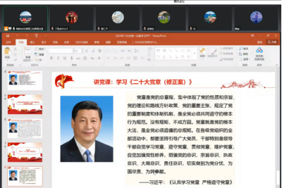 部分党员代表进行了学习体会分享。党员代表陈梦瑶同志表示:二十大党章的修改是深入学习贯彻党的创新理论的需要,是推进党和国家事业发展的需要,是贯彻落实党的二十大精神的需要,在党章中体现党的二十大报告的重要内容,使之成为全党的行为规范和根本遵循,有利于把学习党章与学习党的二十大精神有机结合起来,推动党的二十大精神贯彻落实。学习党章是党员的基本功、必修课,我们要深入学习感悟习近平总书记关于党章的重要论述,深刻认识党章作为党的根本大法的地位作用,自觉认真学习党章、严格遵守党章。要牢记党员第一身份,不负铮铮誓言,自觉把思想和行动统一到党的二十大精神上来。