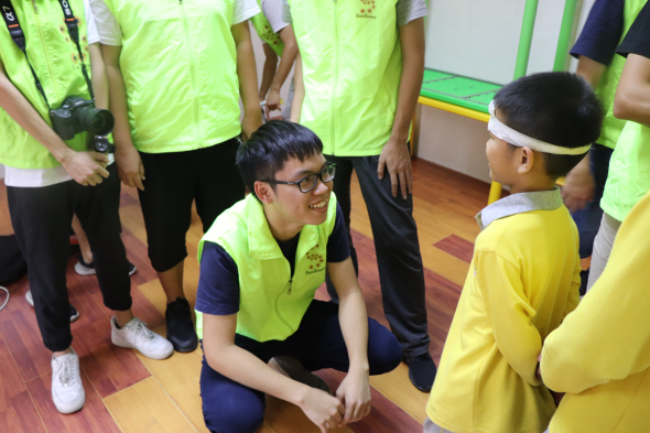 2点半左右,孩子们有序进场,志愿者们为了防止孩子们刚睡醒而兴趣不足,特意准备了一个小视频,播放期间,孩子们认真观看,播放后,志愿者开始对视频的内容提问,现场气氛逐渐调动了起来。接下来到了小游戏时间,志愿者们表演骰子和扑克牌的魔术,并且现场教孩子们变魔术。随着时间的推移,很快到了物理实验时间,由于材料不足,志愿者们只是在台上演示了一遍,没有让孩子们亲自动手做实验。最后一个环节是志愿者们带着孩子们一起跳社会摇,孩子们很开心,气氛很好。到了分别的时候,志愿者们给孩子们送上精心准备的小礼物,一起拍了大合照,孩子们便在义工的带领下有序得回去了。