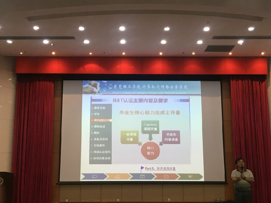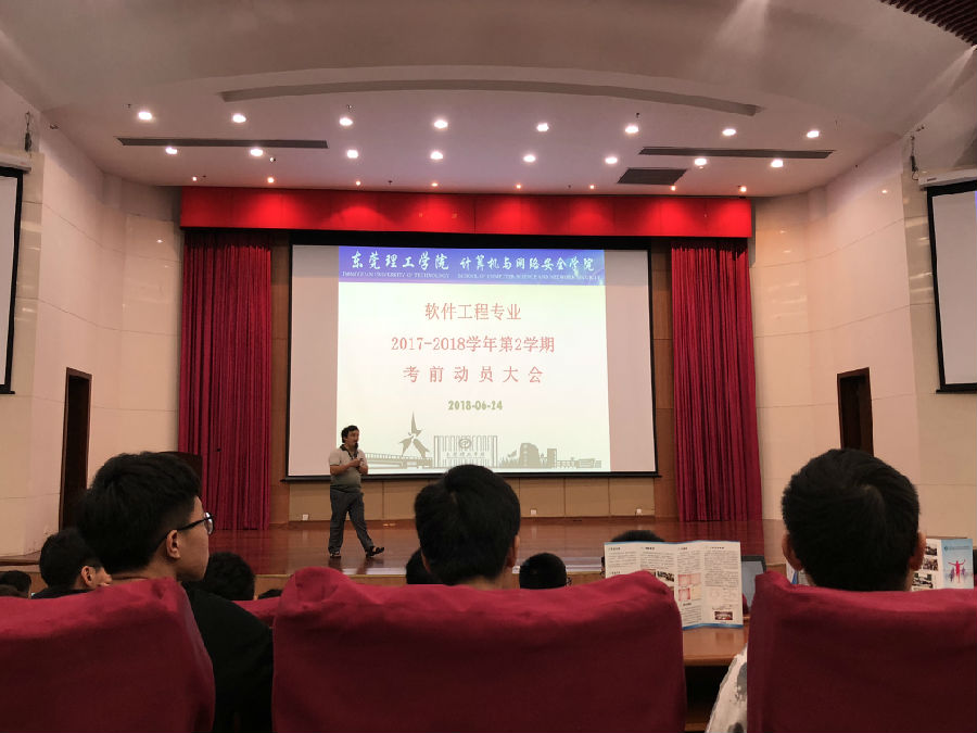 大会先后分为考前动员、IEET工程认证动员两个环节,并由软件工程系副主任敖欣老师主持。在考前动员环节,敖欣老师鼓励大家认真投入复习,并以最好的知识状态迎接即将到来的期末考试。他还强调大家不要因为有重修的机会就放松对自身的要求,考试时要严守考风考纪,以高标准检验自己这一学期以来的学习成果。敖欣老师特别提醒同学们主动了解公司相关的学分要求和考试、重修的相关规定,避免因对教学规定不了解而造成不必要的遗憾。