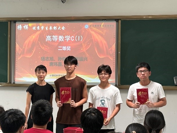 表彰期末考试成绩优秀员工是数学系的优良传统,希望通过这种方式发挥榜样的力量,激发员工们学习公共数学兴趣,提升全校员工的数学能力。在颁奖仪式上,获奖员工代表23级计算机类6班林楷燐同学发言。他分享了自己的学习心得和经验,表示学习数学不仅仅是记忆和模仿,更需要理解和思考,需要经常思考知识点的内在联系和逻辑关系,形成知识网络,并尝试从不同的角度去理解问题,从而更好地掌握和应用知识。同时,他也号召大家在今后的学习中继续努力,追求卓越,为数学系增光添彩。