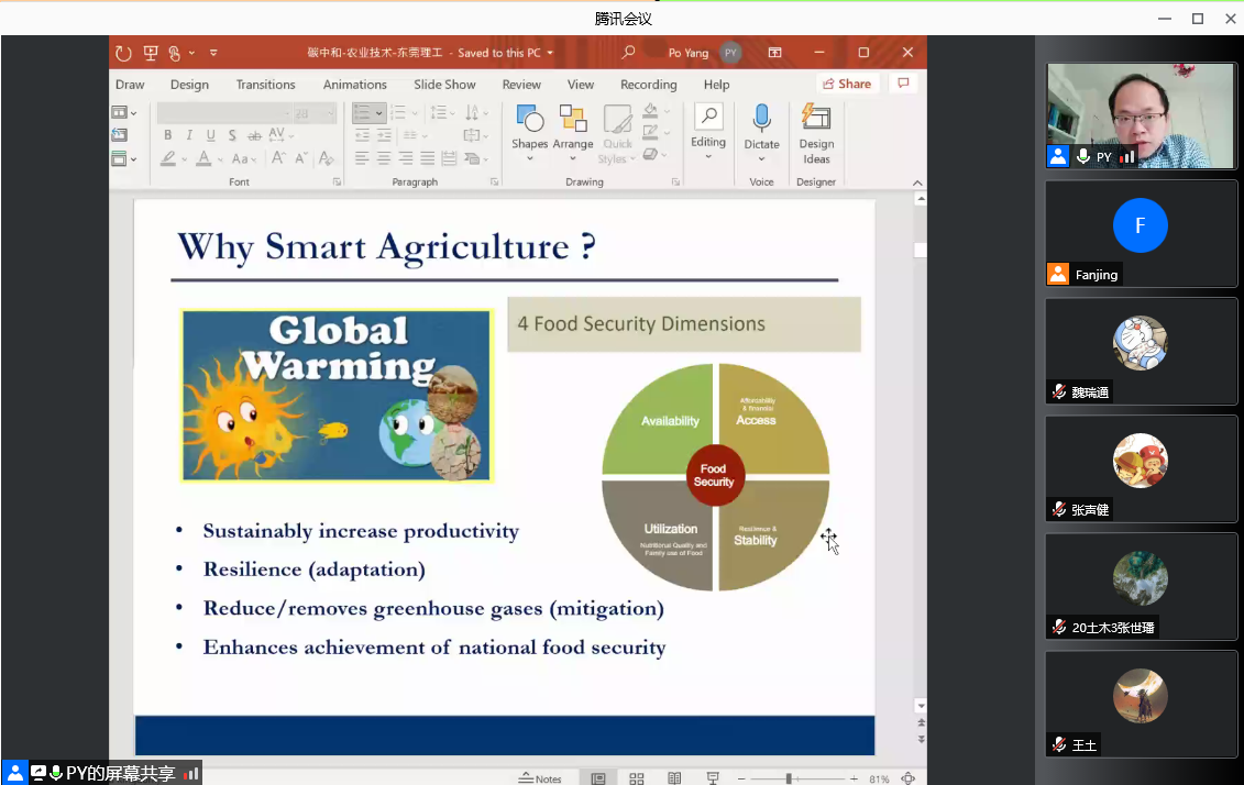 2021年9月17日,bevictor伟德官网邀请到了英国谢菲尔德大学计算机系杨珀副教授来开展《面向世界碳中和战略的智能农业技术研究和展望》讲座。