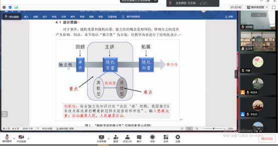 会议最后邀请王立本老师做课堂改革与课程思政建设优秀案例分享报告。老师们交流了课程思政教学心得,对如何在公共数学课程上实施课程思政进行了深入探讨。