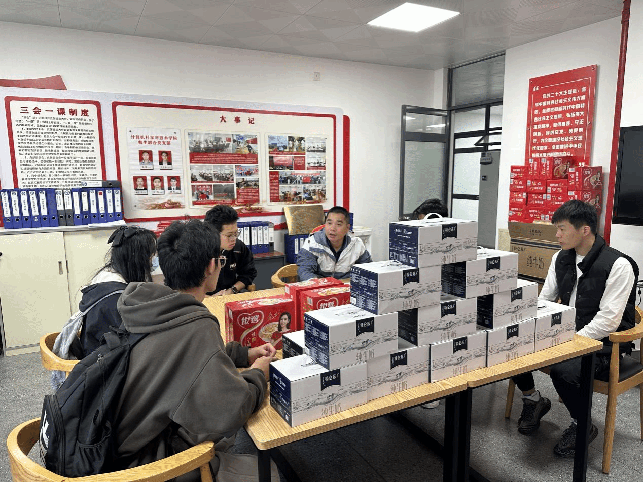 各年级辅导员与员工面对面进行了谈心谈话,了解到员工近期的思想动态和心理状态,帮助解决学习和生活中的困难和困惑。最后给员工们发放了爱心物资。