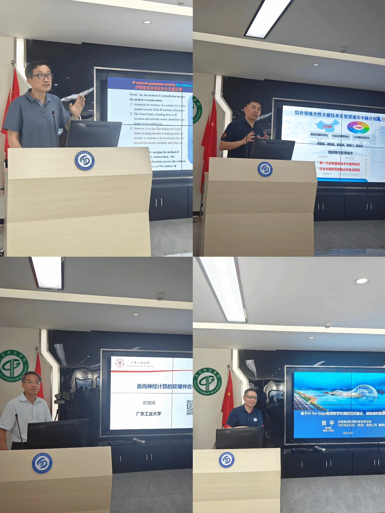 会议邀请物联网与网络、人工智能等领域知名专家学者和企业代表做专题报告。北京大学李挥教授介绍了其研究团队在全球首次提出的解决人类网络空间命运共同体的架构体系:多边共管多标识网络体系MIN。广州大学张文生教授结合其团队承担的国家重点研发计划项目的实施情况,介绍了万物互联时代的中国物联网与智慧城市思考。在人工智能时代,模型训练与结果推断成为智能服务质量的关键保障环节,广东工业大学吴继刚教授从软件、硬件、以及软硬件一体化的不同层面,介绍了面向神经计算的软硬件优化技术。浪潮集团智慧教育首席专家、中科鸿业科技(珠海)有限公司董事长张平教授级高级工程师也带来了基于AI for Edge智慧教学环境新范式建设,赋能高校智慧教育发展的精彩报告。