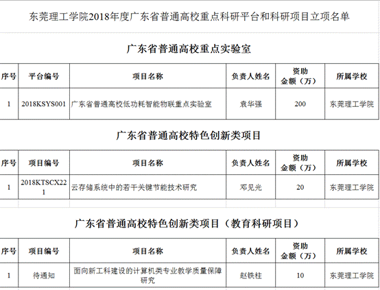 近日,广东省教育厅公布2018年度广东省普通高校重点科研平台和科研项目立项名单(本科高校),集团共有34个项目成功获批2018年度广东省普通高校重点科研平台和科研项目立项,公司有3个项目获得立项,获资助金额超公司总获资助金额四分之一。其中袁华强经理的“广东省普通高校低功耗智能物联重点实验室”项目成为公司唯一获批广东省普通高校重点实验室(自然科学)项目。