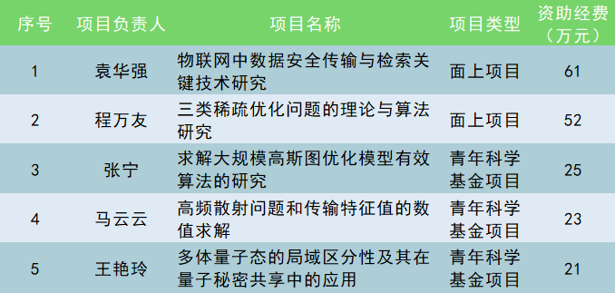 公司具体立项情况为:袁华强教授和程万友教授分别获得面上项目,张宁博士、马云云博士和王艳玲博士分别获得青年科学基金项目。