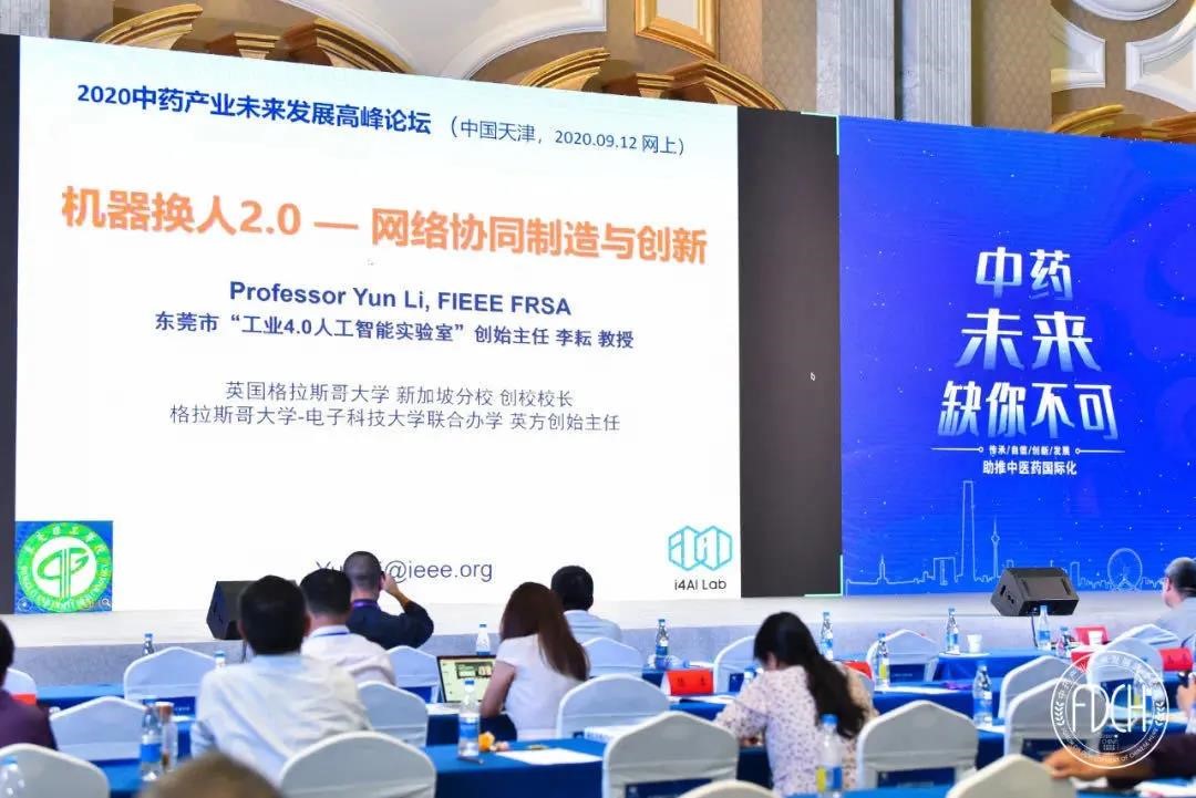 继今年2月14日公司工业4.0人工智能实验室主任李耘教授与中国驻英大使馆等单位在英国皇家学会举办的新冠肺炎中英抗疫联合研讨会作防控智能建模专题报告后,受中国中药智能制造专委会邀请,在9月12日于天津召开的中药产业未来发展高峰论坛上,在线作机器换人2.0-网络协同制造与创新在中药智能制造上的应用展望专题报告,为中医药行业注入新的思路。