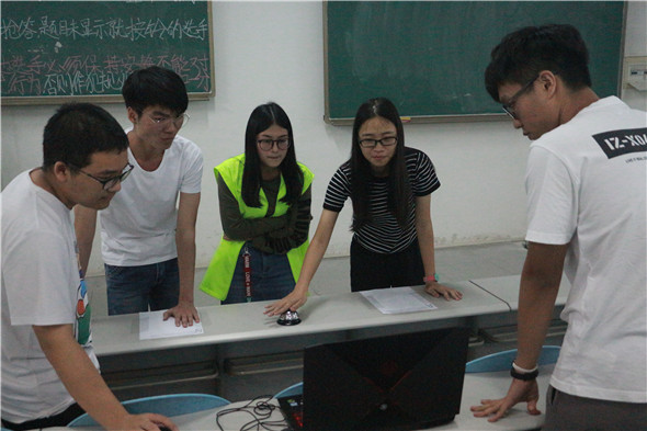 13日晚上和14日下午,首先在松山湖校区进行了一站到底初赛,因为松山湖校区队伍数目比较多,初赛采取小组赛单败淘汰制。15日上午初赛紧接着在莞城校区开展,由于莞城校区的队伍较少,初赛采取了小组赛积分制。参赛队伍共一百多支队伍,在比赛过程中,选手们反应敏捷、平分秋色、不相上下,现场气氛十分紧张。每个参赛队伍都想勇拔头筹,眼看别的队伍抢到答题机会并顺利加分,不少队伍急得长吁短叹、抓耳挠腮。有些选手表现非常精彩,让人情不自禁地为他们鼓掌,最终两个校区共有16支队伍成功晋级,进入复赛。