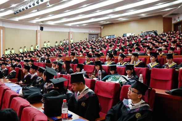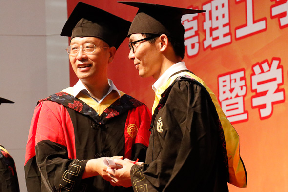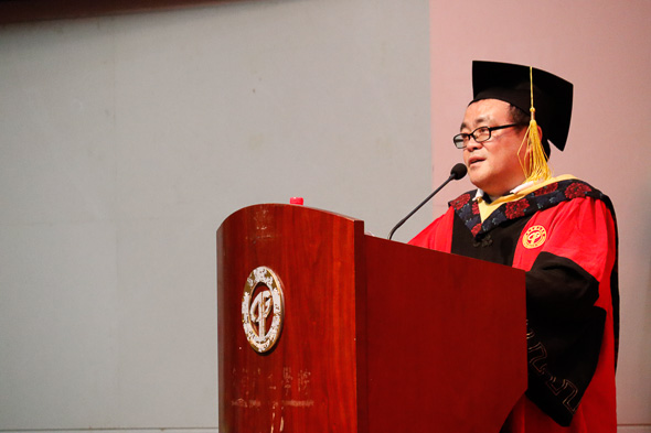 当天天气不佳,早上下起了不小的雨,所幸到了下午,雨势逐渐减弱,为此次学位授予仪式的顺利进行带来了保证。在简短的准备工作后,仪式正式开始。本次仪式首先由袁经理发表致辞。在致辞中,袁经理对各位毕业生表达了由衷的祝福,并希望毕业生们在踏出校门之后,不忘初心,始终牢记母校“学而知不足”的理念,坚持学习,始终带着包容、创新的精神去面对这个高速发展的社会。语毕,台下传来了雷霆般的掌声。随后,便是最重要的学位授予环节了。该环节由经理袁华强教授拨苏正冠,副经理徐钦桂教授授予学位证书。所有的毕业生,按照名单顺序,依次上台,接受证书与拨穗,并合影留念。