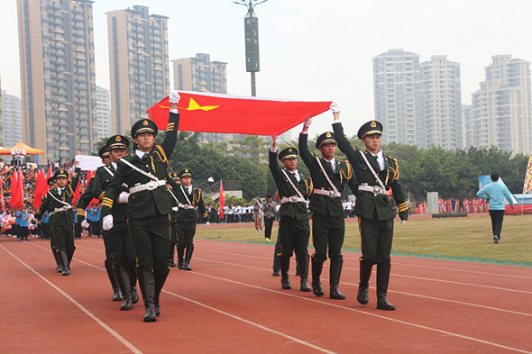 一曲《潮》正式拉开了本次运动会的序幕,由师生代表、员工代表组成的18支代表队迈着整齐的步伐,昂首走进会场。在方阵依次走完后,响起了庄严的国歌声,公司首支国旗护卫队队员们挥舞手臂,迎接国旗,五星红旗在会场高高飘扬,伴随着优美的会歌旋律,校旗冉冉升起。