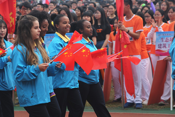 方阵里的国际友人