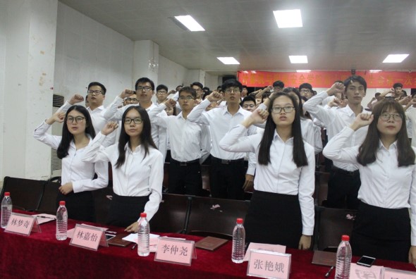 到了最庄严的时刻,主席李仲尧带领员工会全体成员喊口号,宣誓,唱会歌,场面振奋人心,使人有不懈努力的动力。会议后半段,员工会代表宣布:干事素质拓展培训启动仪式。并宣布此次会议结束。当然,最后少不了员工会全体成员的合影留念。