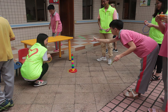 当天中午12点30分,全体成员集合完毕并一同乘车前往目的地。到达之后社工们便对志愿者们进行培训,并紧张地布置活动现场。在一切准备就绪后,活动开始了。本次活动的策划者们准备了“背运气球”、“你画我猜”和“套圈”等若干个游戏,虽然中途因天气原因场地转到了室内,不过由于准备了预备方案,后面的活动仍可以正常地进行。在整个活动中,救助保护中心的很多小朋友们都能积极地参与,与志愿者们一起体验游戏的快乐,享受六一儿童节的欢乐。最后志愿者们还和所有小朋友合唱《朋友》,收获了满满的感动。