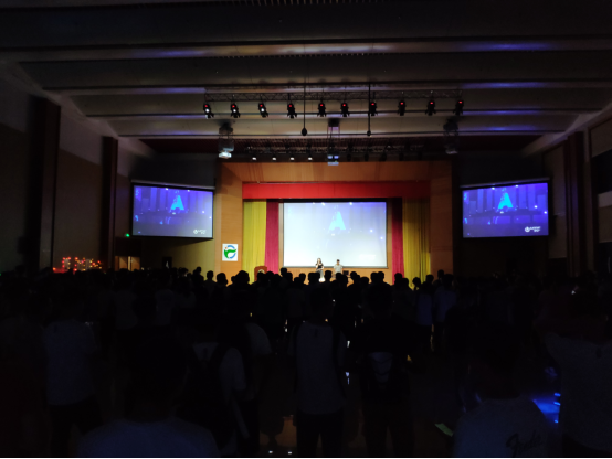 本次新生之夜以电音为主题贯穿始终,途中ACE、TNT两大舞蹈社团为同学们带来了动感十足的街舞表演,跆拳道社团展示了充满力量的跆拳道节目。会场中更有ACE机器人俱乐部带来的机器车展演,使同学们亲自体验了机器的魅力与风采,接触到了大学丰富社团生活的一角。