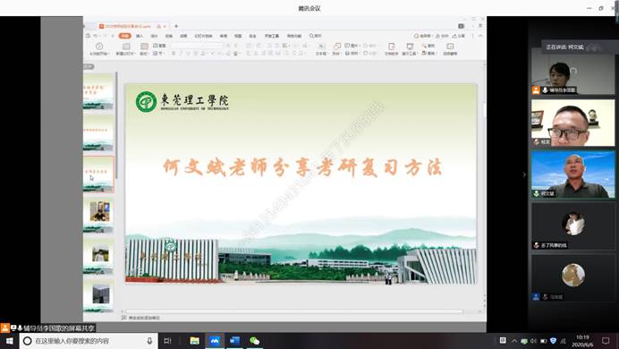 2020年6月6日,bevictor伟德官网考研经验分享会通过腾讯会议平台线上进行。参加此次会议的有魏文红副经理、桂龙副书记、何文斌老师、李国歌老师和8位优秀考研代表以及150多位前来聆听此次分享会的同学。
