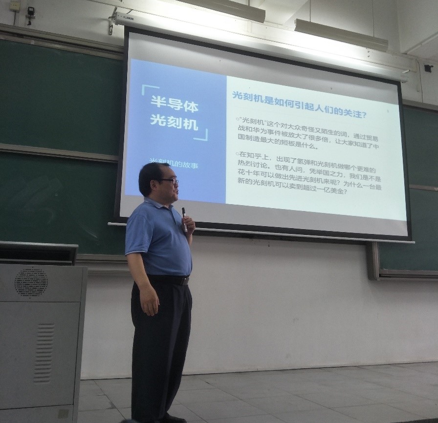 在本次思政课堂中,袁经理向同学们介绍了“光刻机之战”中我国面临的困境与突破重围的方法,希望同学们在大学阶段能够学好专业知识,争取早日为我国科技事业的发展添砖加瓦。