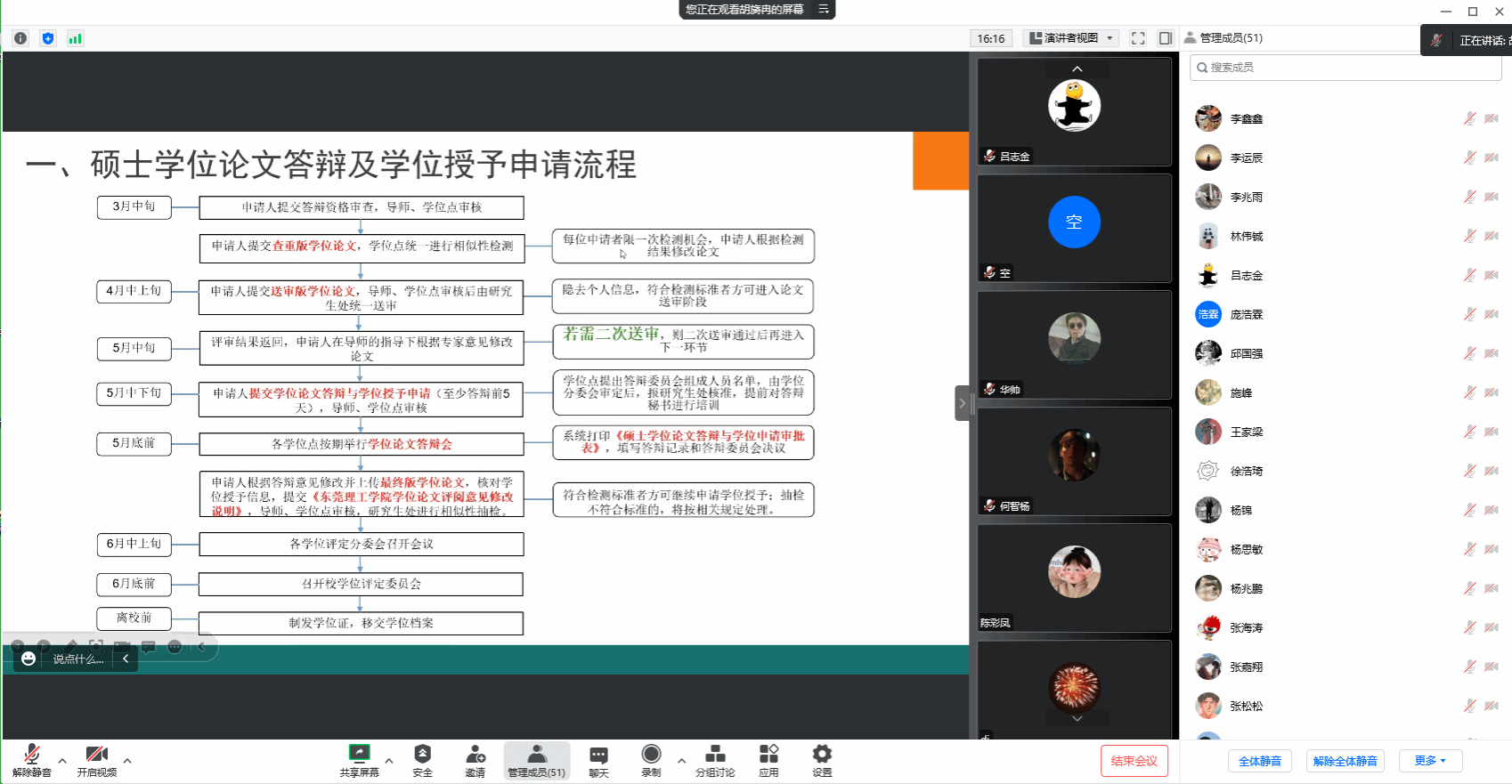 动员会伊始,胡博士就“答辩及学位授予工作”作了详细讲解,重点介绍了硕士学位论文答辩及学位授予申请流程、学位论文评审意见的处理及具体工作的指引,并对一些重要时间节点与关键问题进行了说明。紧接着,针对“韦德官方网站研究生学位论文撰写规范”这一方面,胡博士进行了细致耐心的培训,从毕业论文封面封底的样式、论文正文格式,到页眉页码等细节都向大家一一阐述。