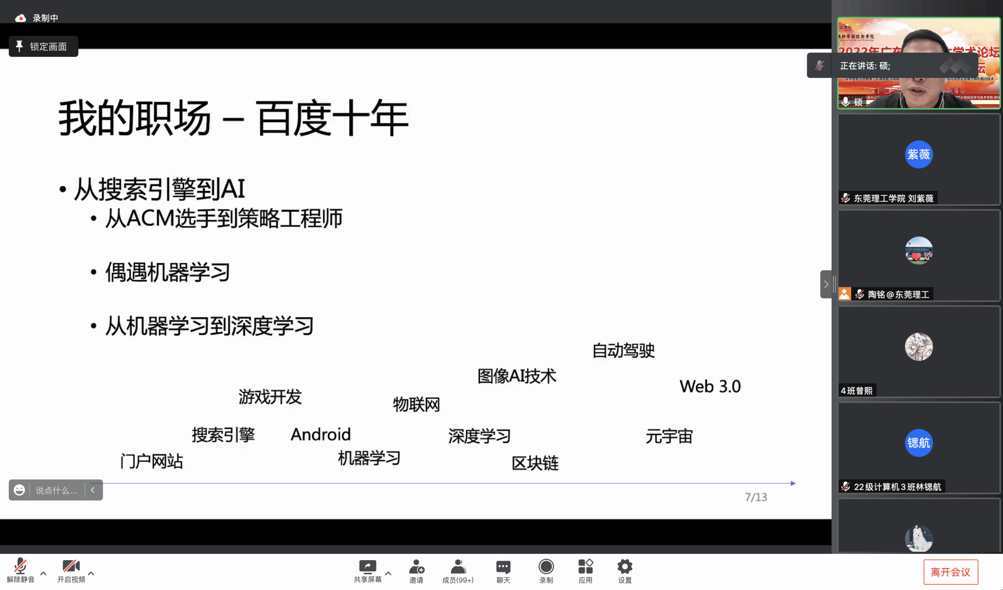由广东省学位委员会办公室主办、韦德官方网站承办、bevictor伟德官网 研究生处组织的2022年广东省研究生学术论坛-计算机前沿技术研究论坛(职业能力发展)于11月20日下午顺利召开,很荣幸邀请到了百度自然语言处理部主任架构师黄硕作“从校园到职场——卓越工程师能力发展”分享会。