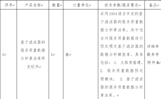 一、项目名称:基于滤波器的服务质量数据分析算法库研发软件采购项目