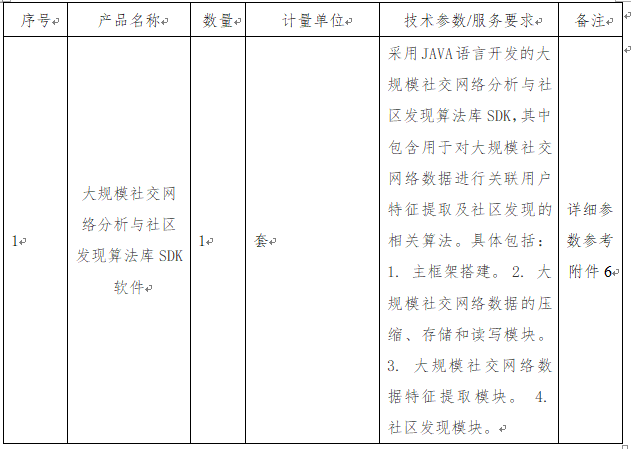 一、项目名称:大规模社交网络分析与社区发现算法库SDK软件采购项目