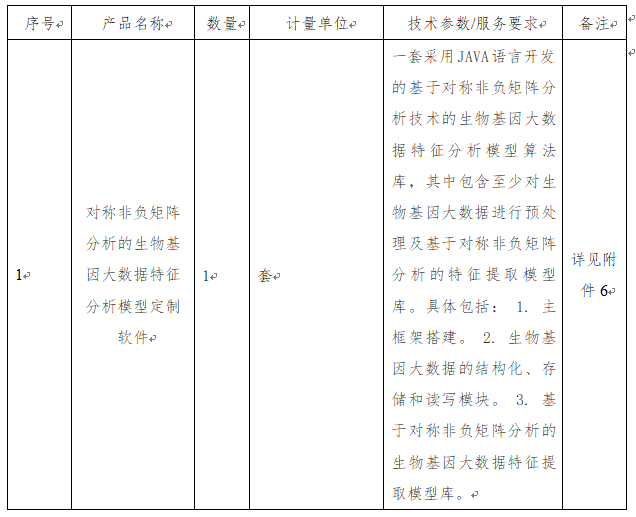 一、项目名称:对称非负矩阵分析的生物基因大数据特征分析模型定制软件采购项目