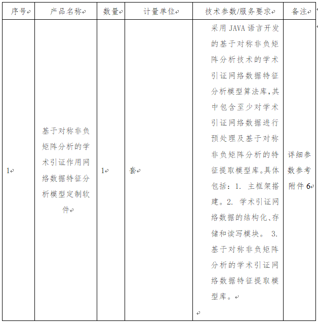 一、项目名称:基于对称非负矩阵分析的学术引证作用网络数据特征分析模型定制软件采购项目