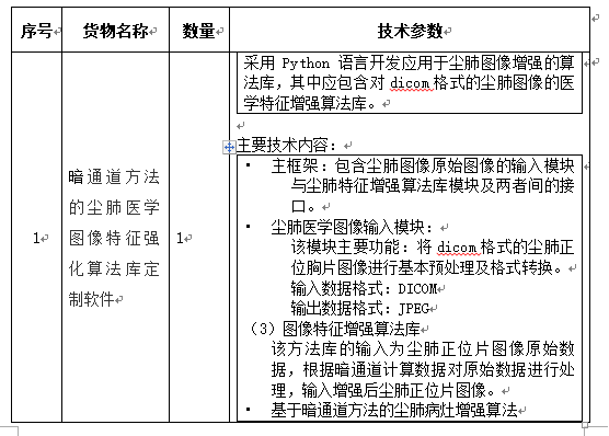 二、项目名称:暗通道方法的尘肺医学图像特征强化算法库定制软件采购项目